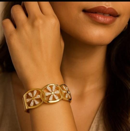 "The Aurora Radiant Bracelet is a premium quality, gold plated accessory that boasts an openable design. Its antitarnish and waterproof features make it ideal for everyday wear. Additionally, its skin safe and hypoallergenic materials ensure comfort and safety for all skin types."